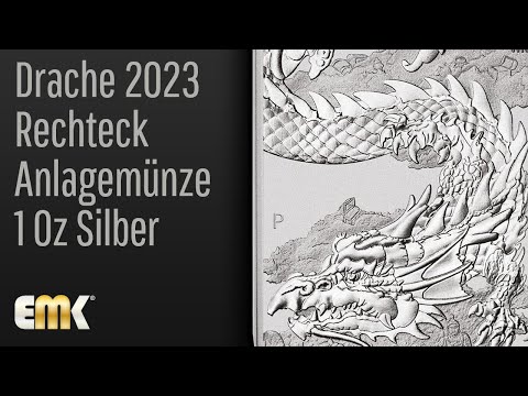 Die Perth Mint widmet diese rechteckige Silber-Anlagemünze dem Chinesischen Drachen. Auf dem Motiv ist ein Abbild eines stilisierten Drachen zu sehen. Im Hintergrund befindet sich der Schatz des Drachens, bestehend aus Schatztruhen, Münzen und Statuen aus alten Zivilisationen. Der Prägebuchstabe "P" der Perth Mint ist ebenfalls im Design enthalten. Das Jody Clark-Porträt von Königin Elizabeth II, ergänzt mit den Jahreszahlen ihrer Regierungszeit "1952-2022", sowie die Aufschriften "1 DOLLAR", "2023" und "1oz 9999 Ag" sind auf der Rückseite abgebildet. In der chinesischen Kultur wird der Drache als göttliches Fabelwesen verehrt. Er steht symbolisch für Kraft, Stärke, Reichtum und Glück. Man glaubt auch, dass Drachen die Herrscher des Wassers und des Wetters sind. Die Rechteck-Anlagemünze wurde aus einer Unze 99,99% reinem Silber geprägt und ist weltweit auf 250.000 Exemplare limitiert.
