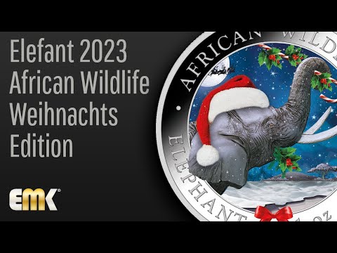 Die Weihnachts-Sonderausgabe Somalia Elefant 2023 aus der beliebten African Wildlife Serie wurde aus einer Unze 99,99% reinem Silber in Stempelglanz-Qualität geprägt und befindet sich in einer Schneekugel. Die African Wildlife Serie aus Somalia erscheint mit jährlich wechselndem Elefanten-Motiv und ist bei Sammlern und Anlegern sehr gefragt. Auf dem 2023er Motiv ist der Kopf eines ausgewachsenen Elefantenbullen zu sehen, während er seinen Rüssel um eine Zuckerstange wickelt. Im Hintergrund sind Schneeflocken, der Mond und ein fliegender Weihnachtsschlitten zu sehen. Entlang des Münzrandes befinden sich die Aufschriften „AFRICAN WILDLIFE“ und „ELEPHANT“ sowie das Gewicht „1 oz“ und die Feinheit „Ag 999.9“. Die Rückseite zeigt das somalische Staatswappen sowie Herkunftsland, Prägejahr und Nennwert: "SOMALI REPUBLIC 2023 100 SHILLINGS". Die Weihnachts-Münze ist gekapselt und eine ideale Geschenkidee zum Fest !