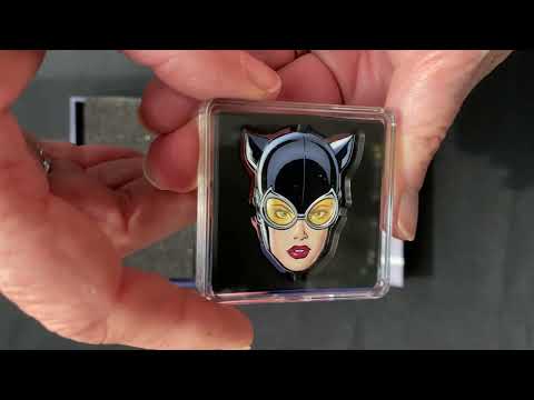 Die vierte Ausgabe der "Faces of Gotham™" Serie ist Catwoman™ gewidmet. Eingeführt als Schurkin, entwickelte sich die in einem Catsuit verkleidete Selina Kyle zu einer gelegentlichen Verbündeten von Batman™. Die Form der Münze bildet das Gesicht von Catwoman™ mit ihrer ikonischen Katzenmaske detailgetreu in Farbe nach. Ihren ersten Auftritt hatte Catwoman™ im Jahr 1940, damals noch unter dem Namen "The Cat". Sie ist weder eindeutig gut noch böse und verfolgt oft ihre eigenen moralischen Vorstellungen und Ziele. Gelegentlich kämpft sie auch an der Seite von Batman™ und hatte in einigen Verfilmungen sogar ein romantisches Verhältnis mit dem Superhelden. Sie ist eindeutig zu erkennen an ihrem ikonischen Catsuit, einem engen Ganzkörperkostüm dessen Maske Katzenohren besitzt. Die einzigartig geformte DC Comics™ Catwoman™ Münze wurde von der New Zealand Mint aus 1 Unze 99,9% Silber in Polierter Platte geprägt und ist auf nur 5.000 Exemplare weltweit limitiert. Die Lieferung erfolgt im thematisch passenden Originaletui inklusive einem Echtheits-Zertifikat.