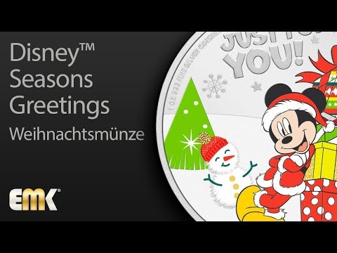 Weihnachtsgrüße von der berühmtesten Maus der Welt ! - Die achte Ausgabe aus der Disney™ Season's Greetings Serie präsentiert Mickey Maus™ lächelnd in einem Weihnachtsmann-Anzug in Farbe. Mit lässig überschlagenen Beinen lehnt sich die beliebte Zeichentrickfigur an einem Stapel von vier bunten Weihnachtsgeschenken an. Im Hintergrund sind ein lächelnder Schneemann sowie mehrere Tannenbäume und Schneeflocken abgebildet. Abgerundet wird das fröhliche Design der Silbermünze mit dem Schriftzug „JUST FOR YOU!“. Auf der Rückseite sind das Porträt von Königin Elizabeth II sowie Nennwert und Ausgabejahr zu sehen. Die Münze wurde von der New Zealand Mint aus einer Unze 99,9% Silber in Polierter Platte geprägt. Die Lieferung erfolgt in einer kugelförmigen Münzkapsel, die an den Weihnachtsbaum gehängt werden kann, und der originalen festlichen Disney™ Verpackung. Eine außergewöhnliche Geschenkidee zum Weihnachtsfest für alle Disney™ Fans !