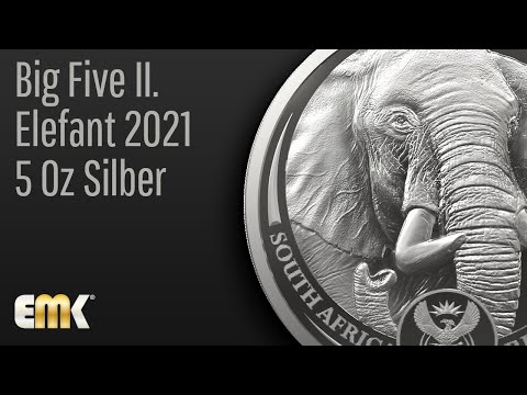 With the release of the Big Five II Series, the South African Mint continues the success story of a coveted classic. Once again, the Series includes a total of five coins, all dedicated to South Africa's impressive wildlife. The animals known as the "Big Five" - Elephant - Lion - Buffalo - Rhino - Leopard - are considered emblems and ambassadors of this culturally rich country and represent the African fauna. This 2021 issue is the first 5 Oz silver Elephant ever released. The motive shows a detailed close-up of the head of an adult Elephant. The inscriptions "SOUTH AFRICA", "BIG FIVE 2021" and the South African coat of arms are also part of the design. The reverse shows two halves of an elephant's head. Placing two of these coins next to each other gives a full close-up portrait of an elephant. When several of these coins are placed next to each other, an entire herd of elephants appears. In the center, the denomination "FIVE RAND", the weight "5OZ" and the fineness "Ag 999" are shown. The African elephant (Loxodonta africana) is probably the largest and most impressive representative of the African animal world, which generally stands as a symbol of power and strength. The "gentle giant" is characterized by its excellent memory and a very pronounced social behavior. In the wild, the elephant can live up to 60 years - but to this day the threat from poachers remains great. The Big Five II Elephant 5 oz silver coin is limited to only 500 pieces worldwide and is delivered in the original wooden box including a numbered certificate of authenticity.